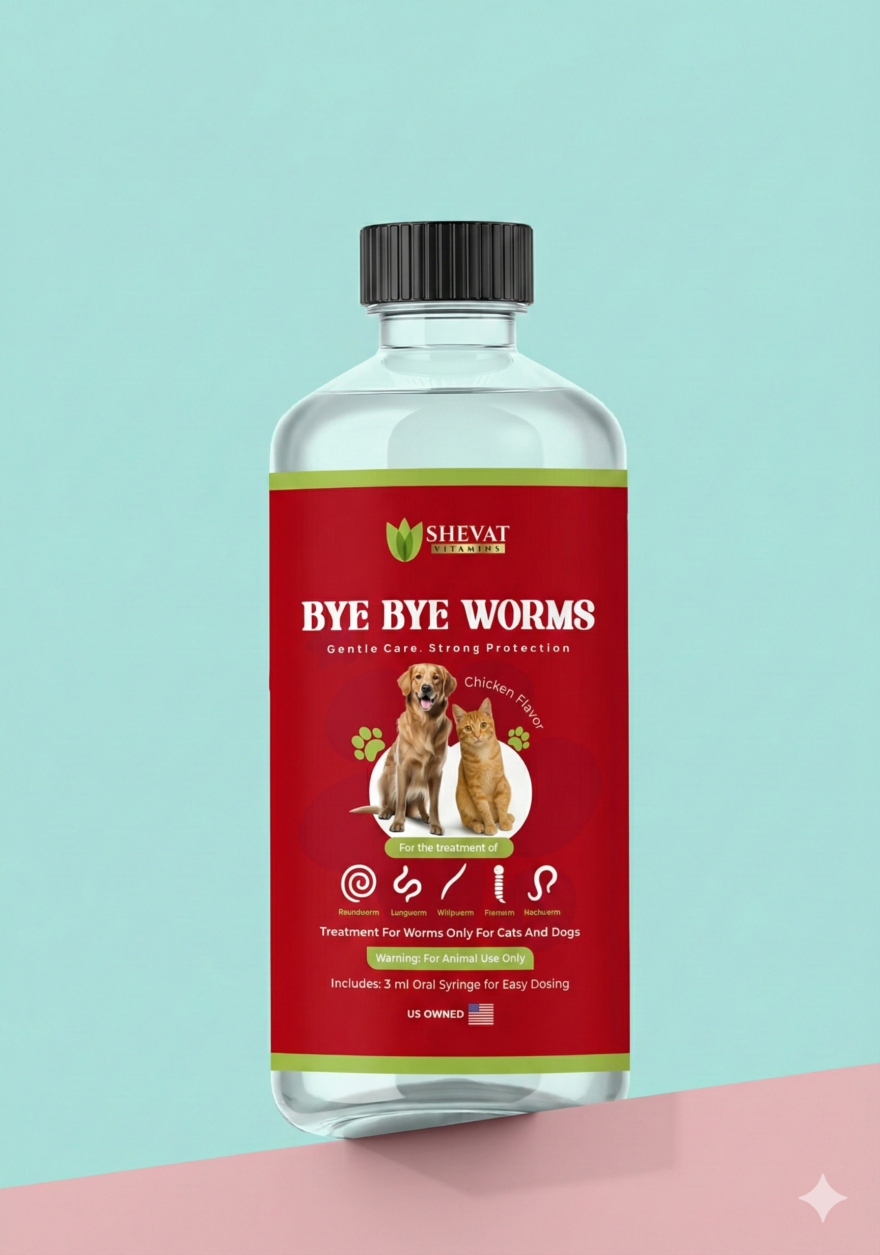 Shevat Vitamins Bye Bye Worms – Advanced Liquid Dewormer for Cats & Dogs