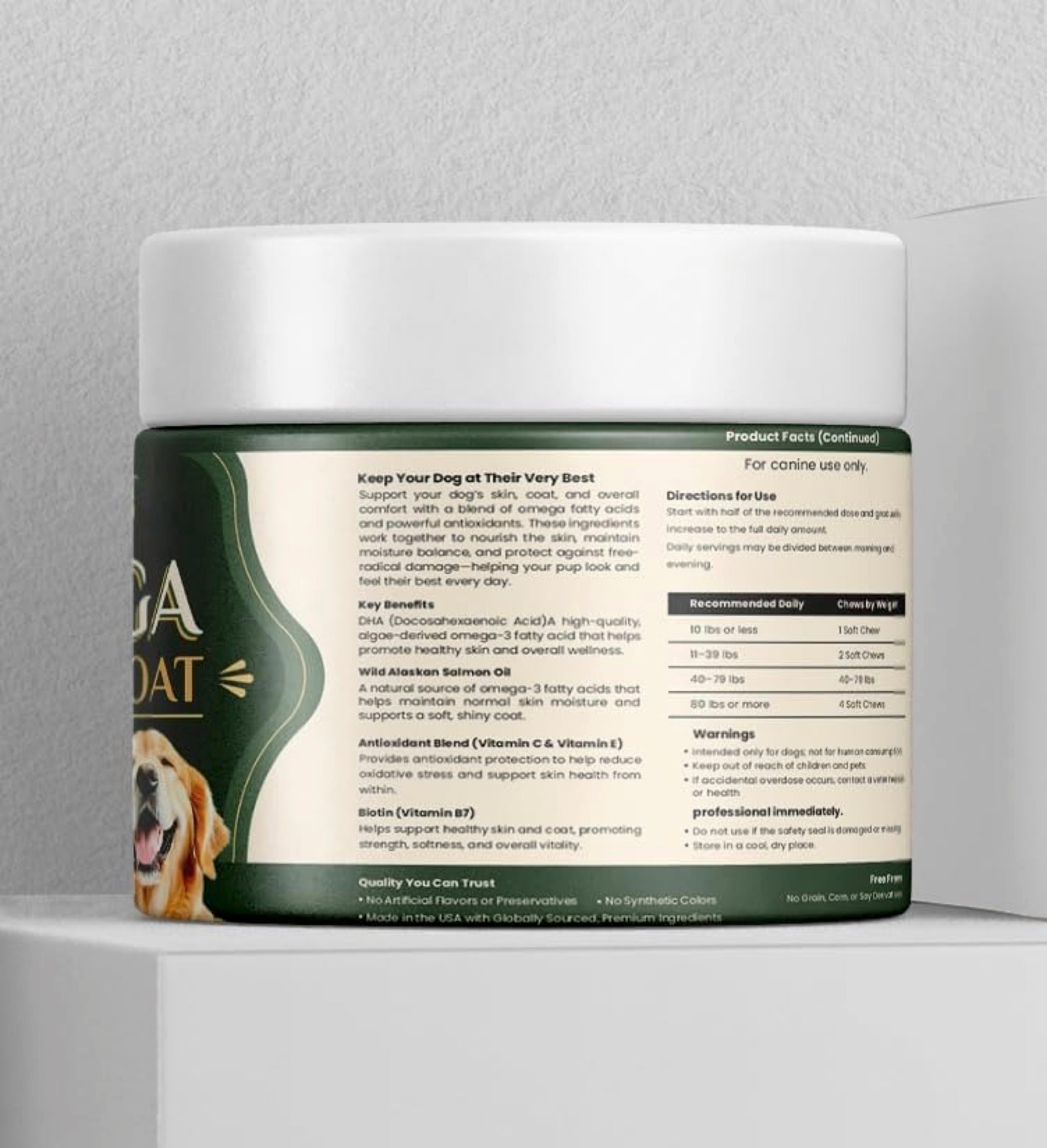 Skin & Coat Health: Reduces shedding, itchiness, and hot spots.